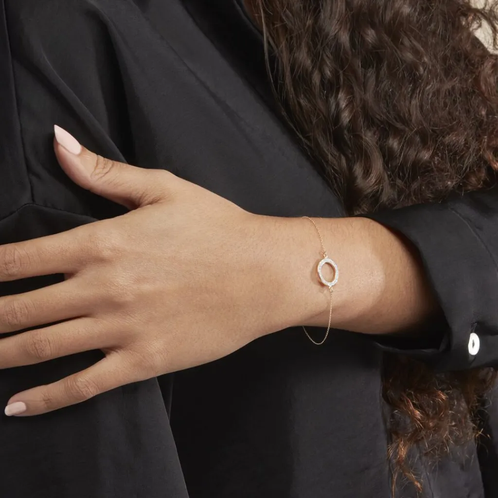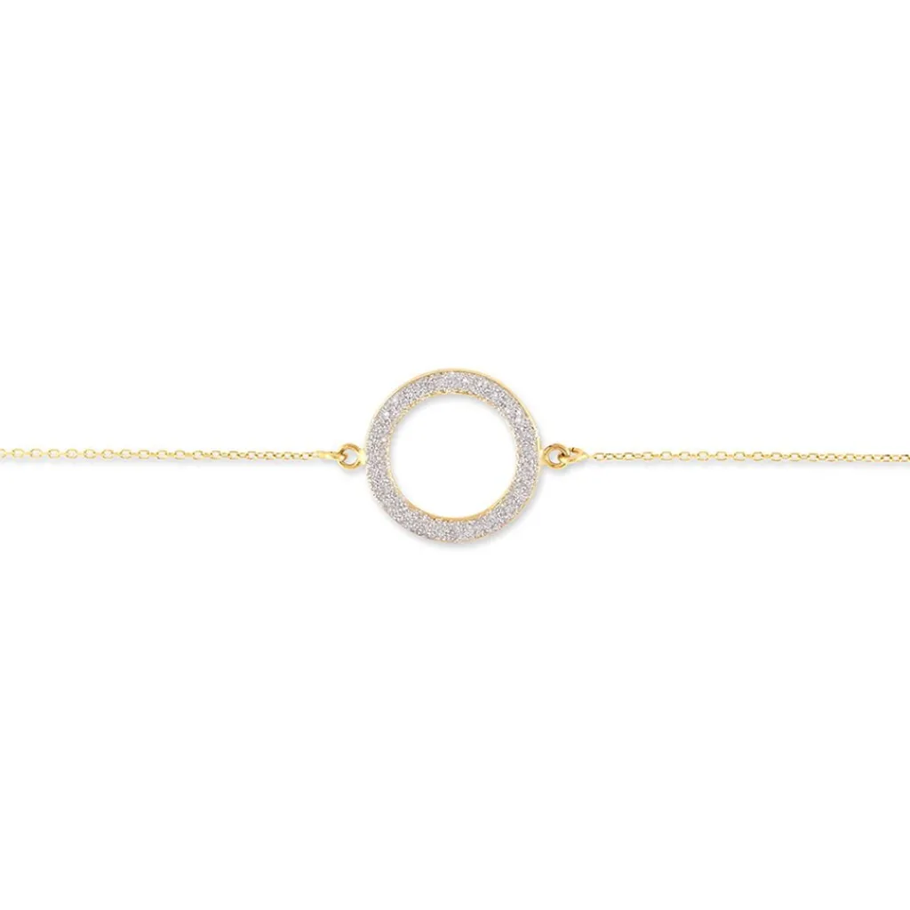 Bracelet Or Jaune 375/1000 Cercle Ajoure Glitter Argente Maille Jaseron 18cm