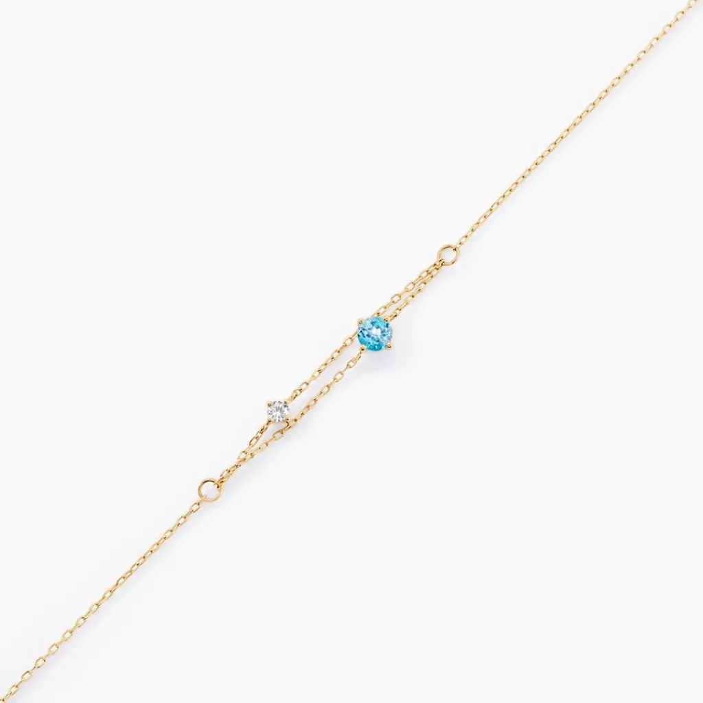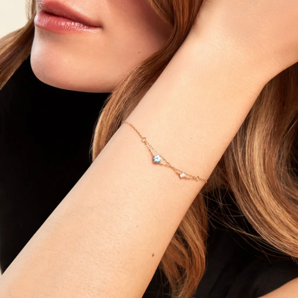 Bracelet Or Jaune 375/1000 Topaze Sky Et Oxyde De Zirconium Maille Forcat 16+2cm