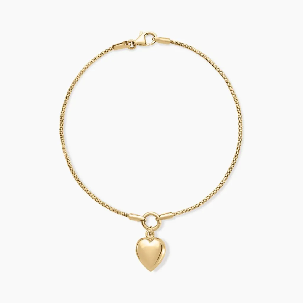 Bracelet Or Jaune 375/1000 C艙ur Maille Pop Corn 18cm