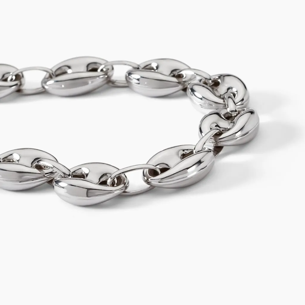 Bracelet Argent Blanc 925/1000 Maille Grain De Cafe Epaisseur 9.5mm 21cm