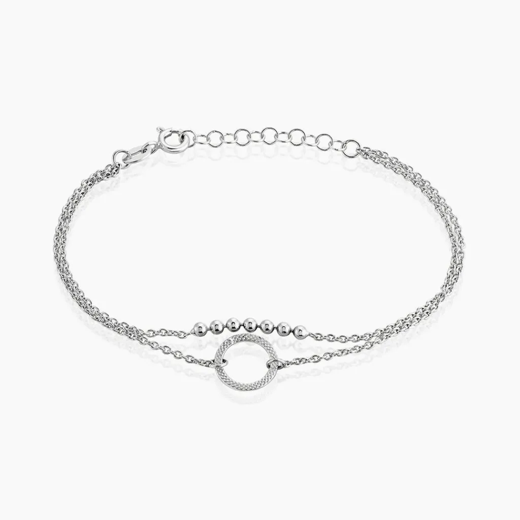 Bracelet Argent Blanc 925/1000 Cercle Ajouré Et Boules Double Maille Forçat 16+3cm