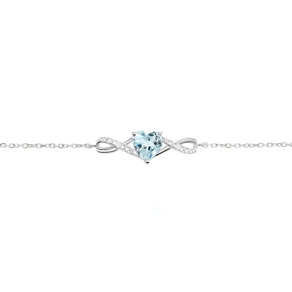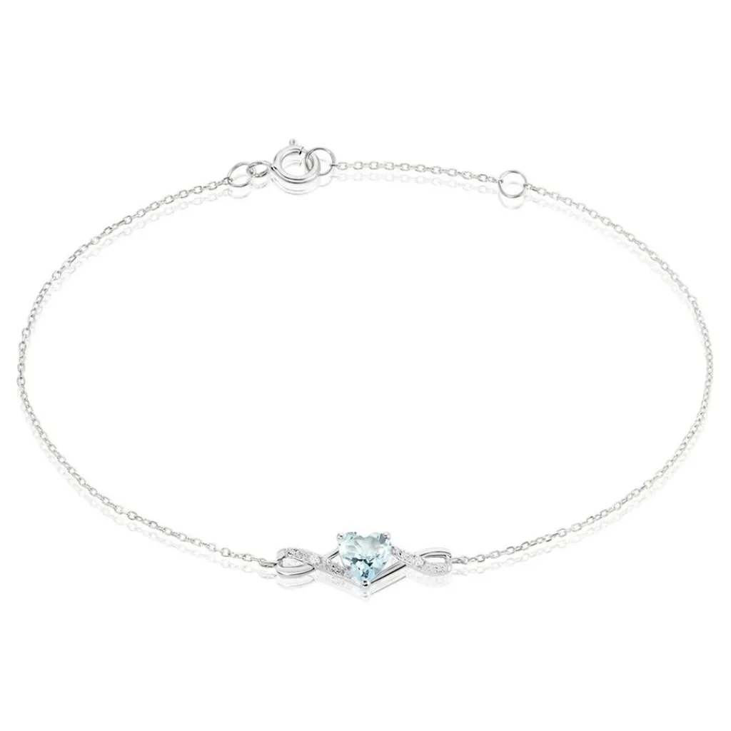 Bracelet Or Blanc 375/1000 Coeur Topaze 0.75cts Serti Griffes Maille Forcat 18cm