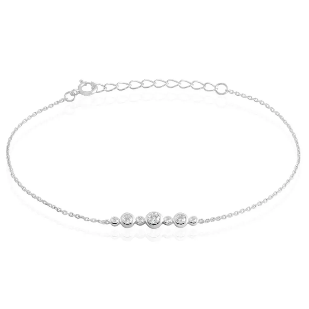 Bracelet Argent 925/1000 cristof Effet Rivière Aléatoire Sertis Clos Oxydes De Zirconium Maille Forçat 18.5cm