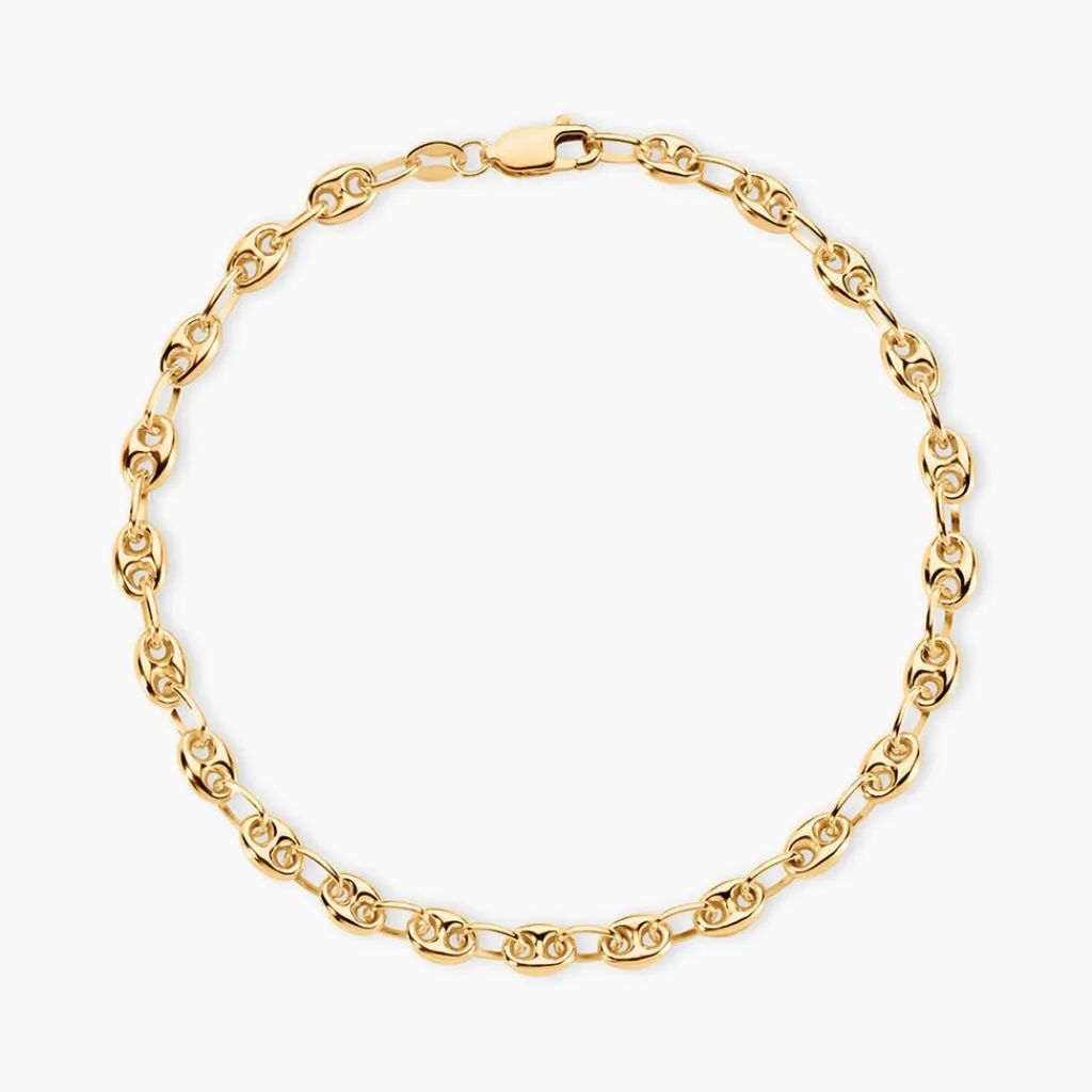 Bracelet Or Jaune 375/1000 Maille Grain De Cafe Largeur 4.7mm Longueur 21cm