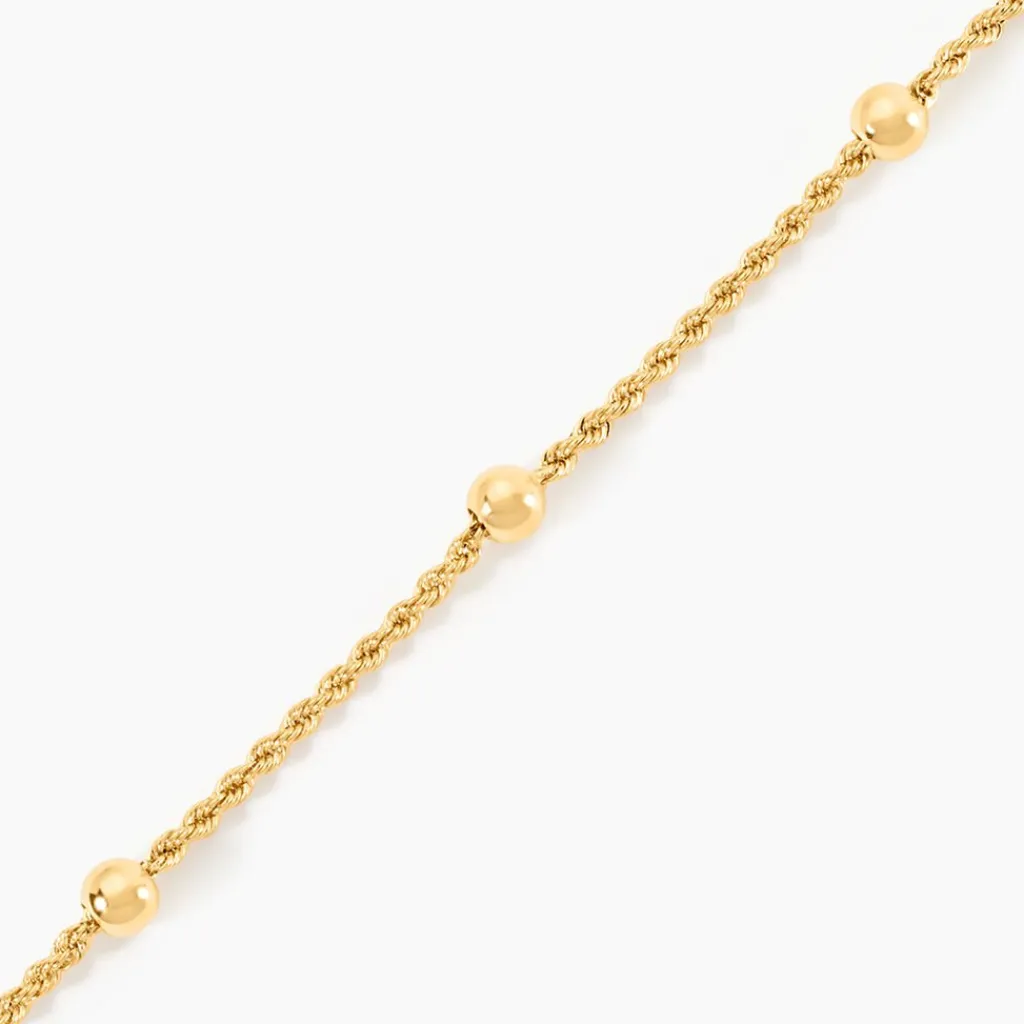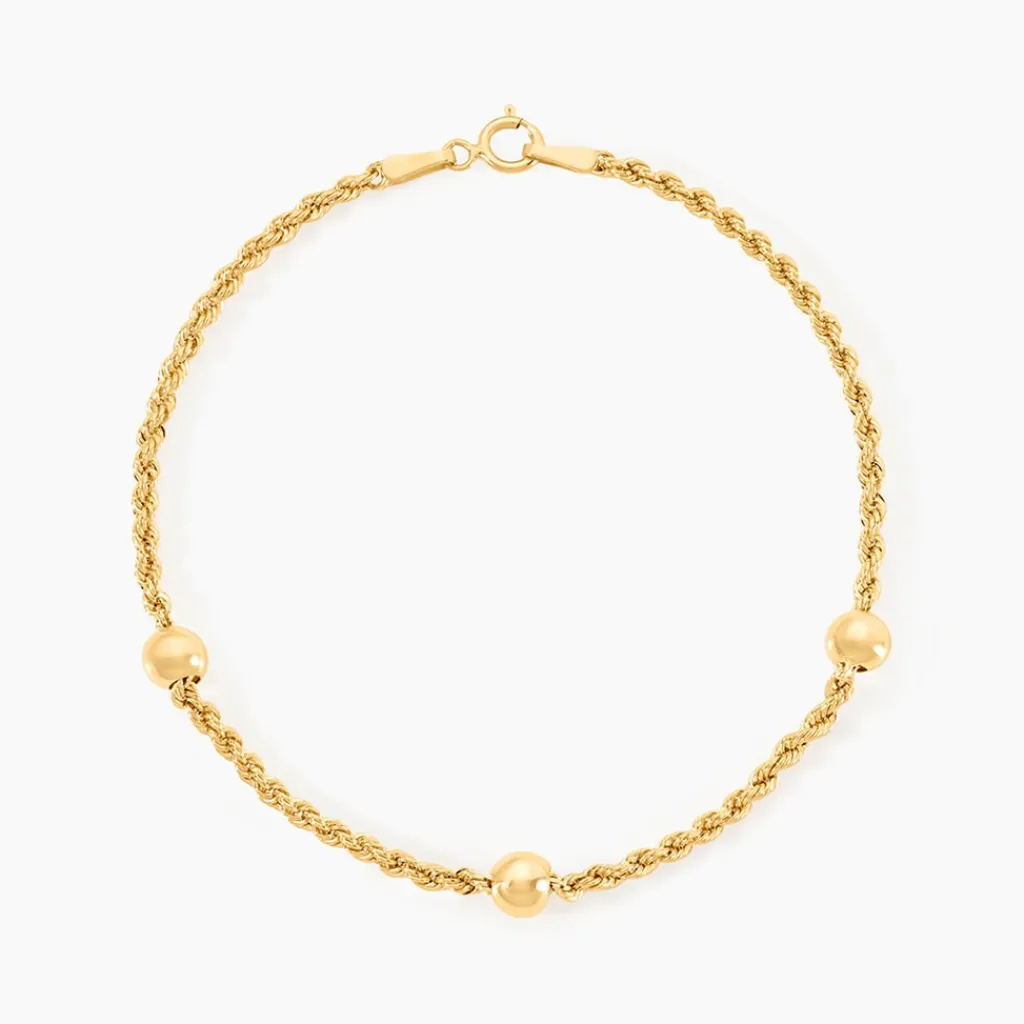 Bracelet Or Jaune 750/1000 Maille Corde Largeur 2,2Mm Avec 3 Boules 5Mm 18Cm