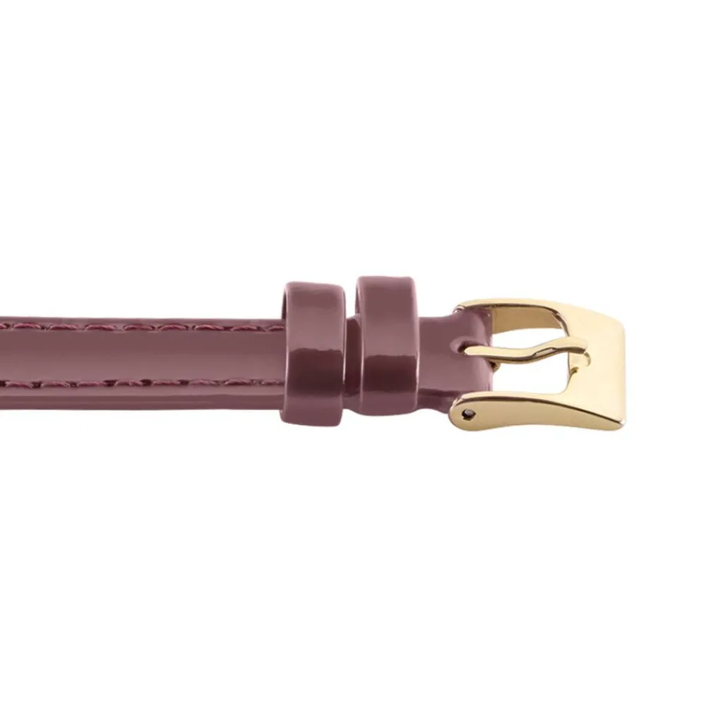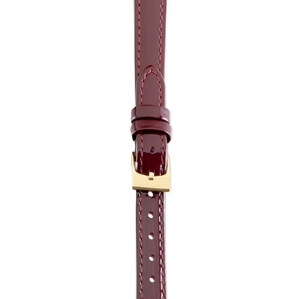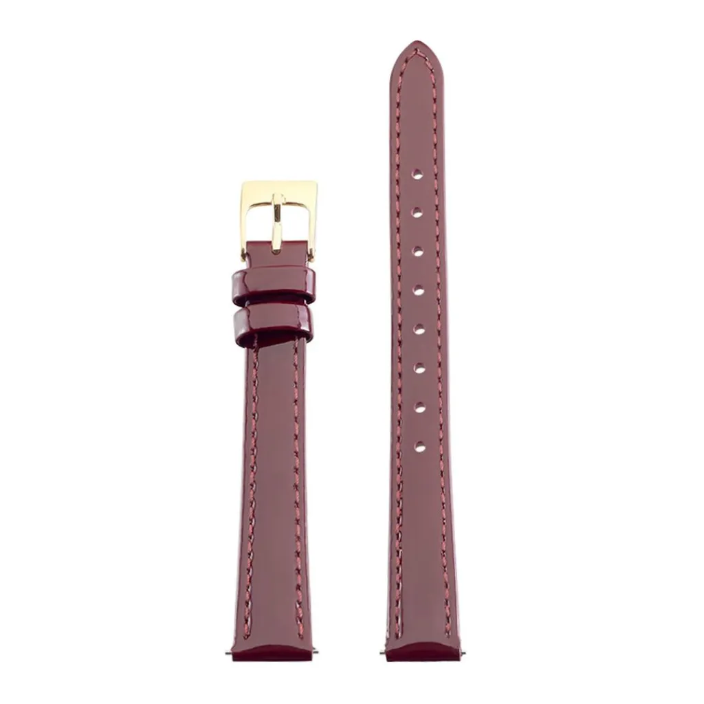 Bracelet De Montre Cuir Rouge Bordeaux Brillant Boucle Doree 12mm