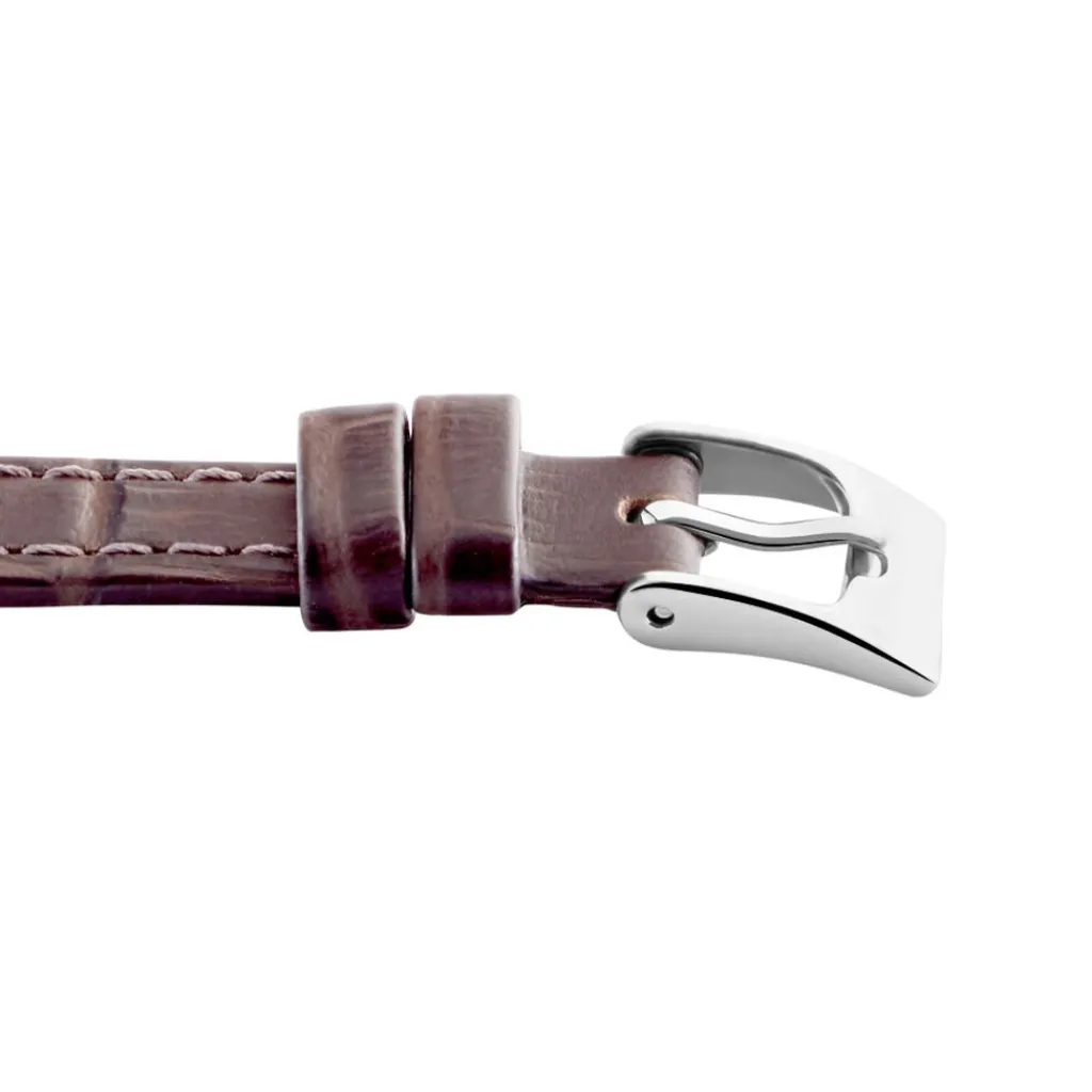 Bracelet De Montre Cuir Alligator Marron Boucle Argentee 10mm