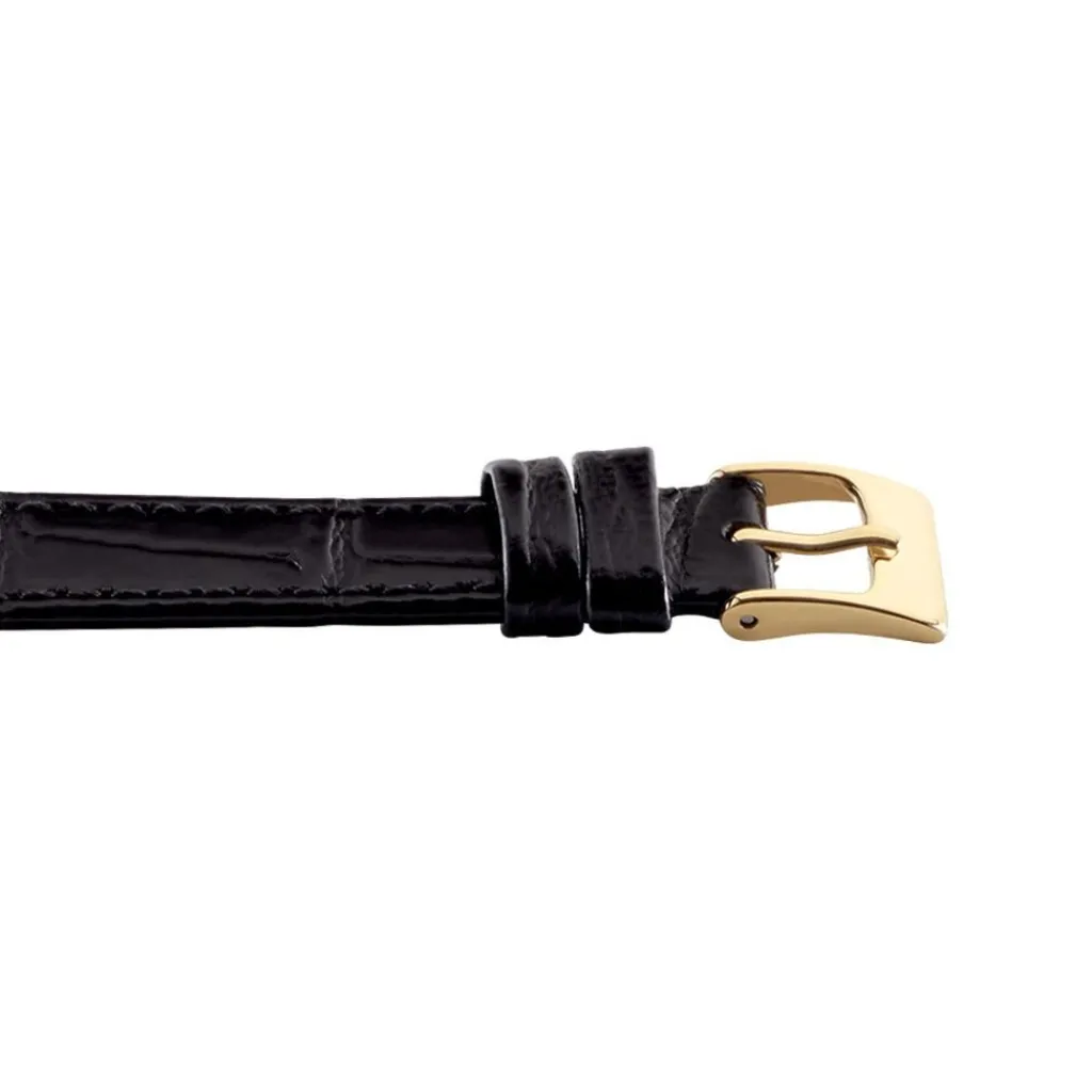 Bracelet De Montre Belton Cuir Alligator Noir Boucle Dorée 12mm