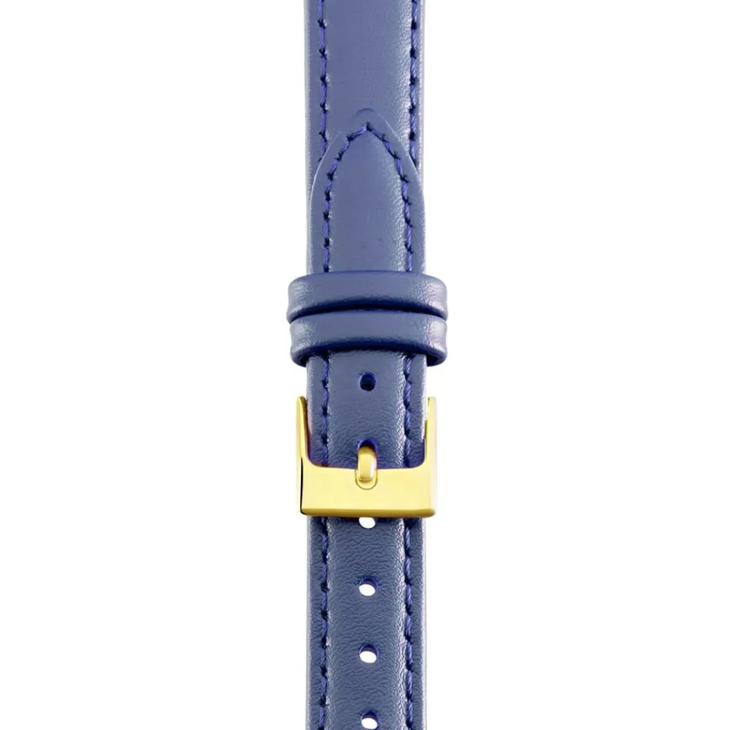 Bracelet De Montre Cuir Lisse Bleu Marine Boucle Doree 14mm