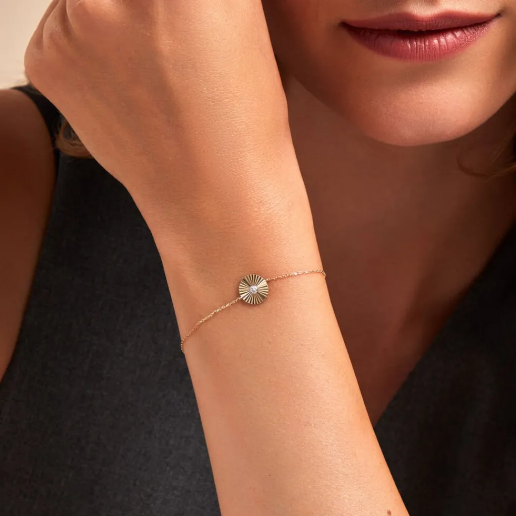 Bracelet Or Jaune 375/1000 Pastille Diamantee Pavage Diamants Maille Forcat 16+2cm