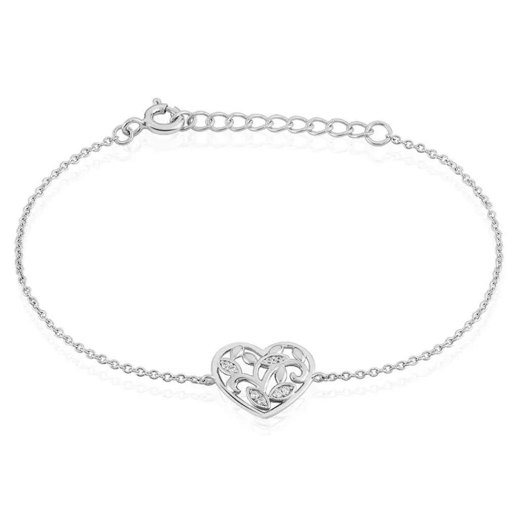 Bracelet Argent Blanc 925/1000 C艙ur Arbre De Vie Sertis Micro Setting Oxydes De Zirconium 18.5cm