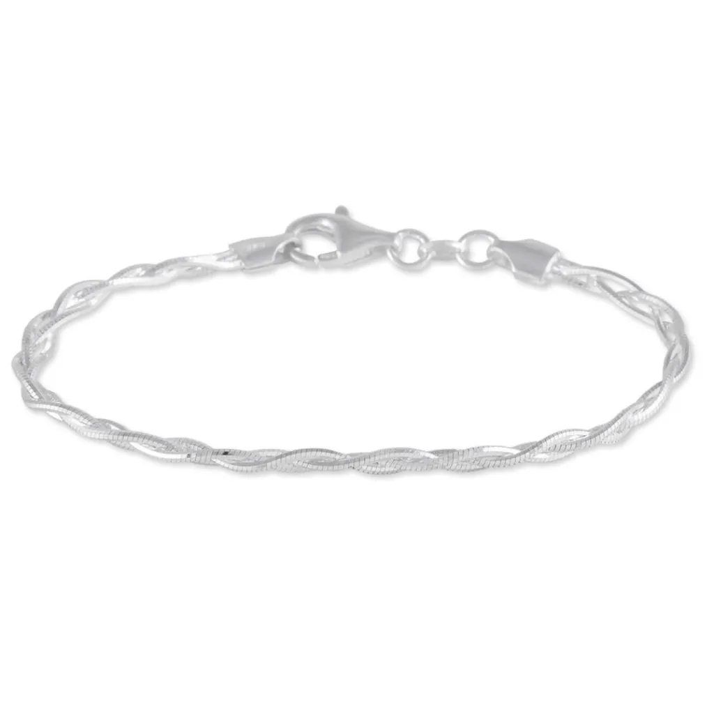 Bracelet Argent Blanc 925/1000 Maille Tresse 3 Fils Largeur 3mm 18cm