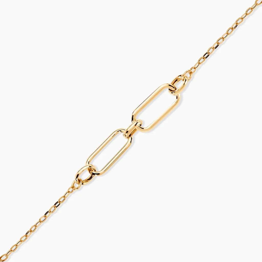 Bracelet Or Jaune 375/1000 Double Maillons Maille Forcat Ronde 16+3cm