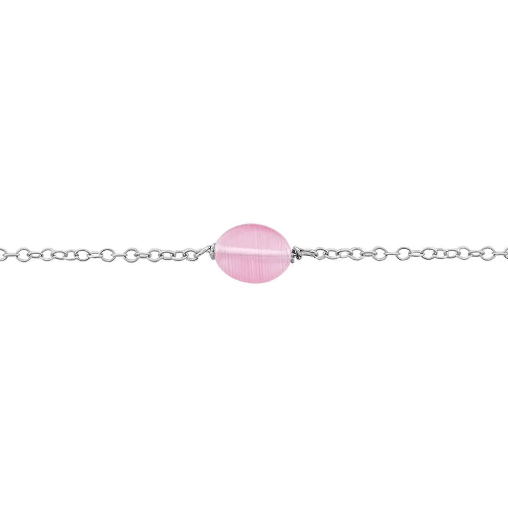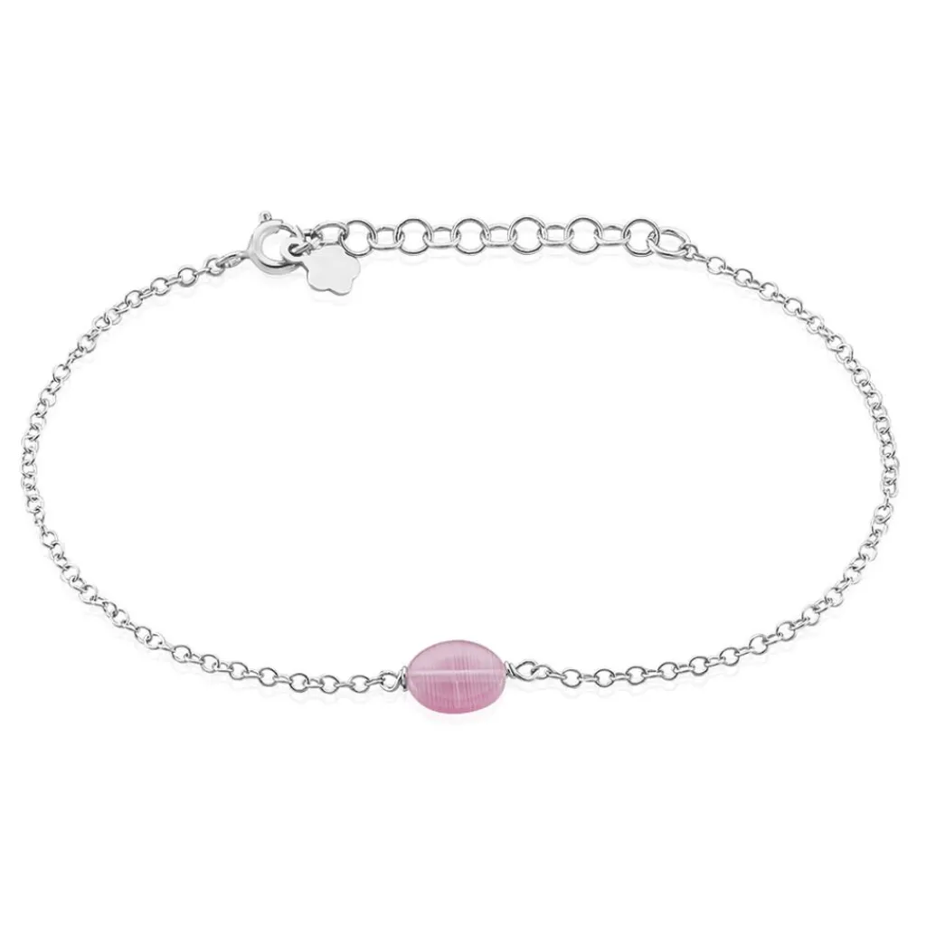 Bracelet Argent Blanc 925/1000 Maille Forcat Quartz Rose 16cm