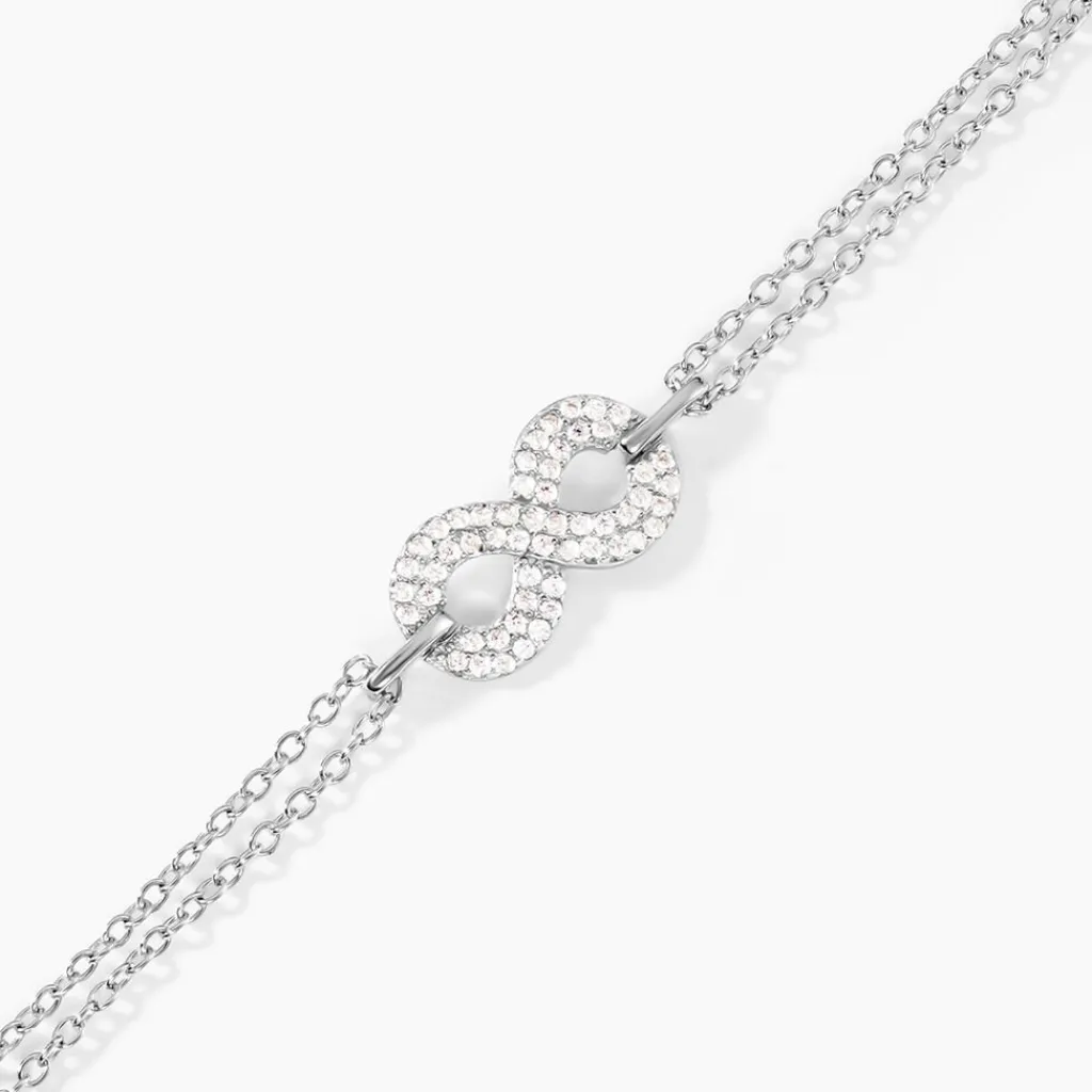 Bracelet Argent Blanc 925/1000 Infini Pavage Oxydes De Zirconium Maille Jaseron 16+3cm