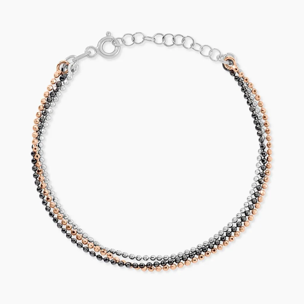 Bracelet Argent Bicolore 925/1000 Et Ruthenium Triple Maille Boules 19cm