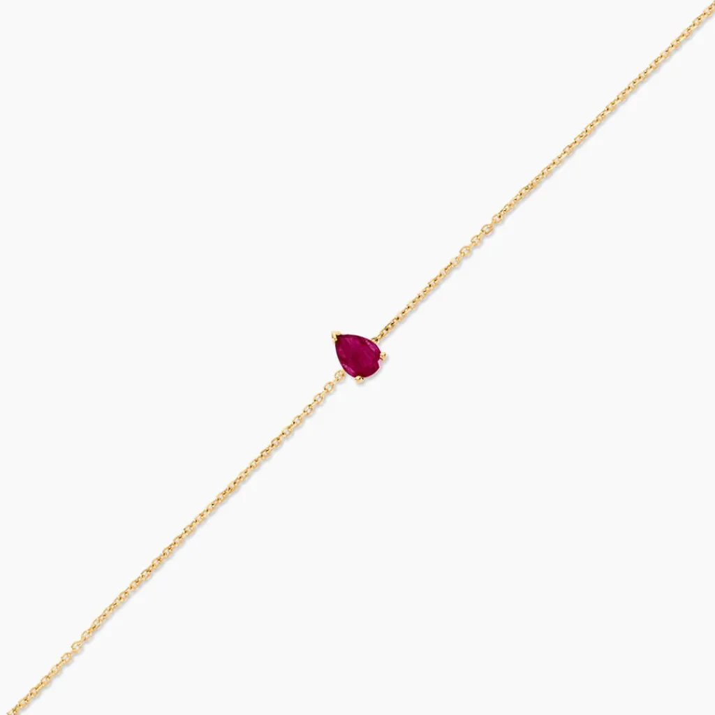 Bracelet Or Jaune 750/1000 Solitaire Rubis Poire 0,4Cts Serti 3 Griffes Maille Forcat 16+2Cm