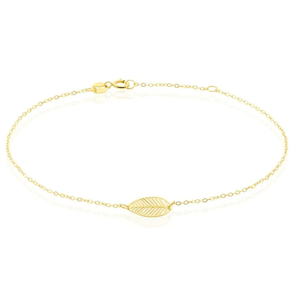 Bracelet Or Jaune 375/1000 Feuille Ajouree Maille Forcat 18cm
