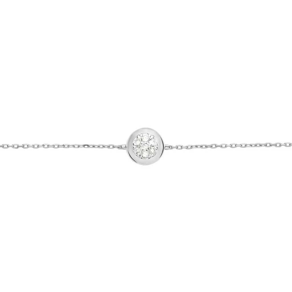 Bracelet Or Blanc 375/1000 Multipierres Diamants 0.09ct Serti Clos 18.5cm