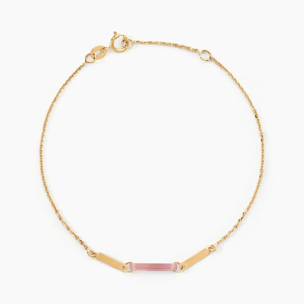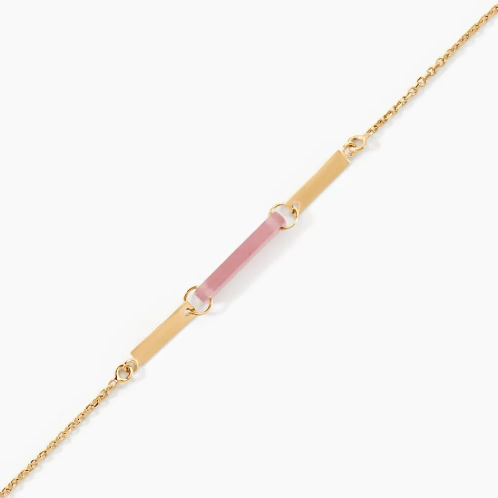 Bracelet Or Jaune 375/1000 Barre Rectangle Calcedoine Peche Maille Jaseron 16+2cm
