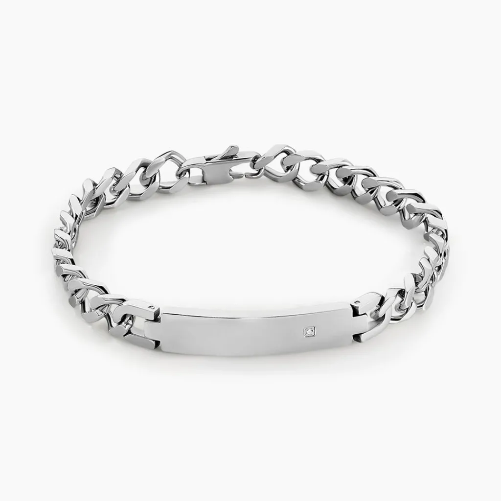 Bracelet Acier Inoxydable Blanc Maille Gourmette Et Plaque Pm 7mm 21cm