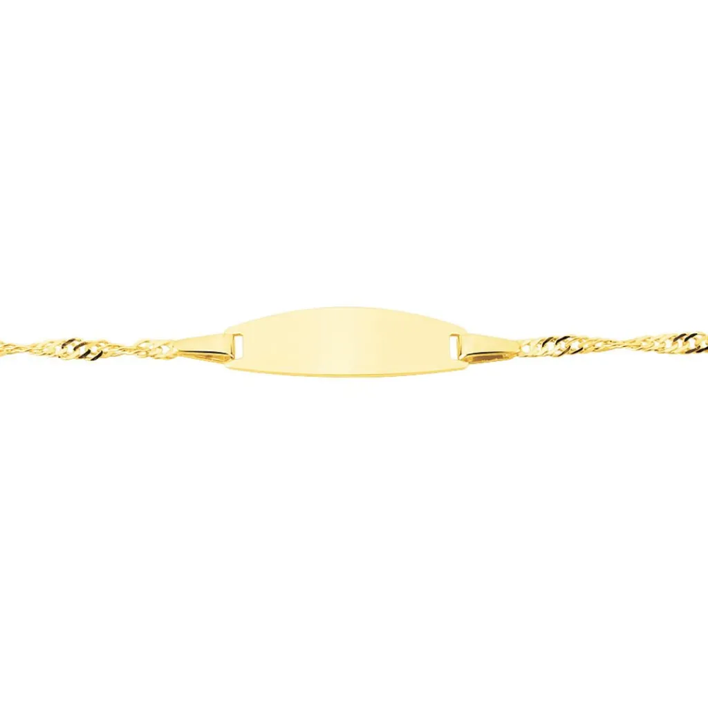 Bracelet Identite Bebe Or Jaune 750/1000 Plaque Ovale Maille Singapour 12/14cm