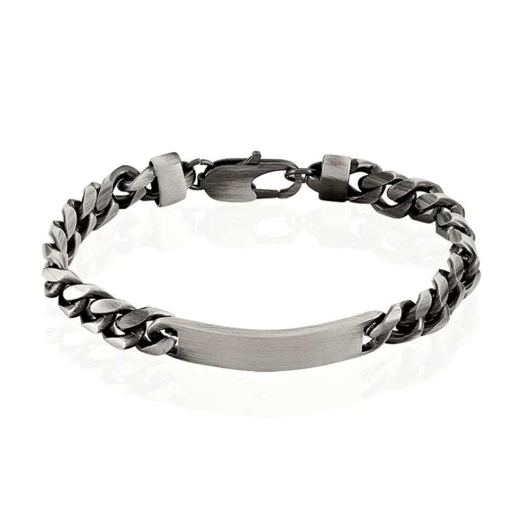 Bracelet Acier Inoxydable Gris Effet Vieilli Identite Gourmette 10mm 20+3cm