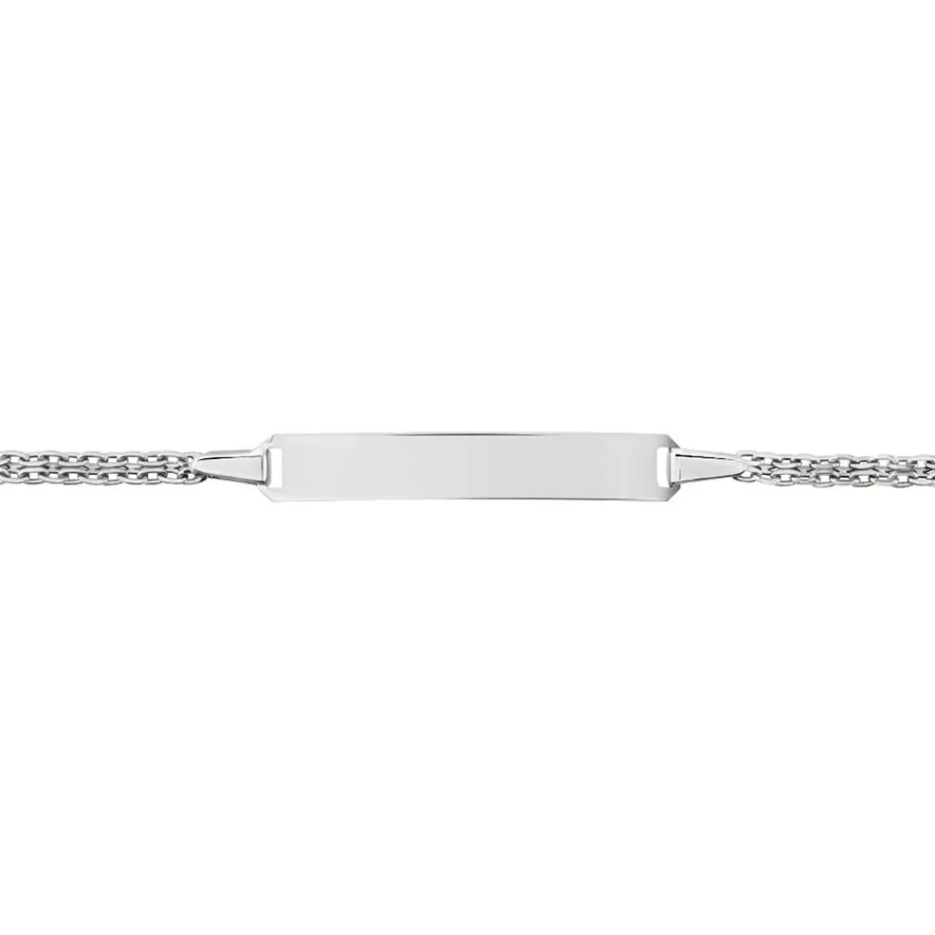 Bracelet Identité Bebe Or Blanc 375/1000 Plaque Rectangle Maille Bismark 16cm