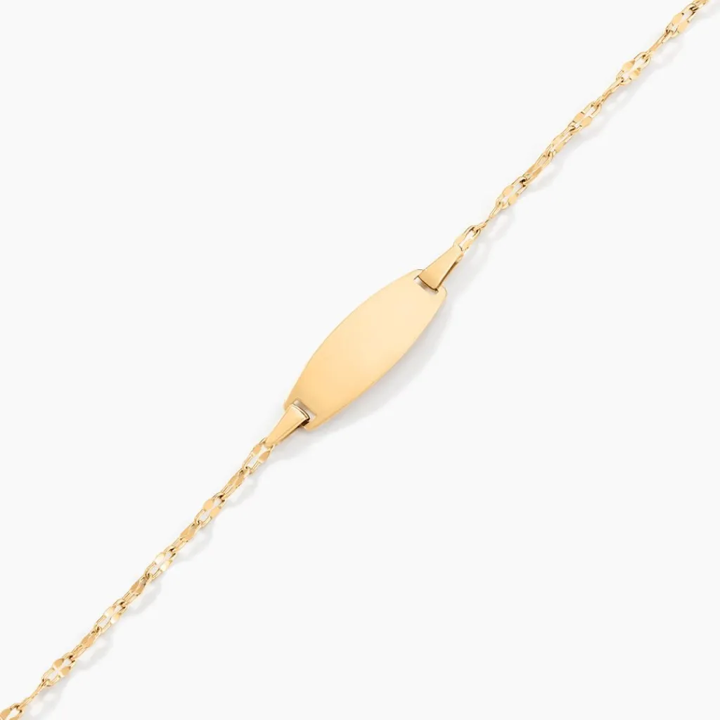 Bracelet Identite Bebe Or Jaune 750/1000 Plaque Ovale Maille Lumina Largeur 1.6mm 14+2cm