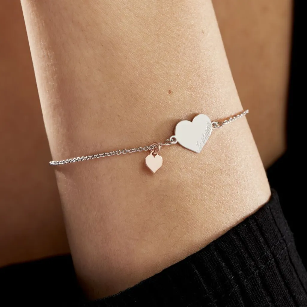 Bracelet Argent Bicolore 925/1000 Double C艙urs Message Je T’aime Maille Forcat 18cm