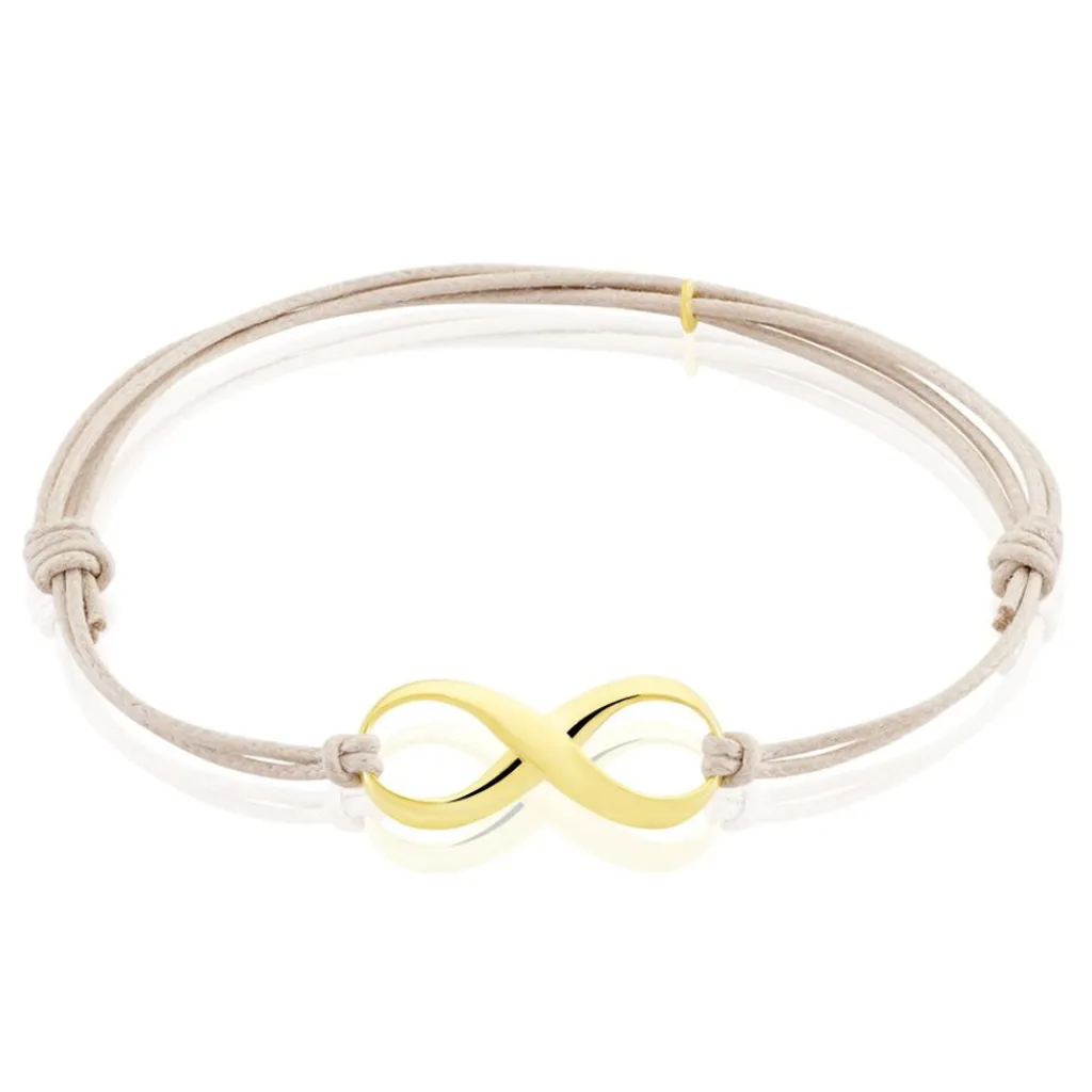 Bracelet Or Jaune 375/1000 Sur Cordon Coton Beige Ajustable