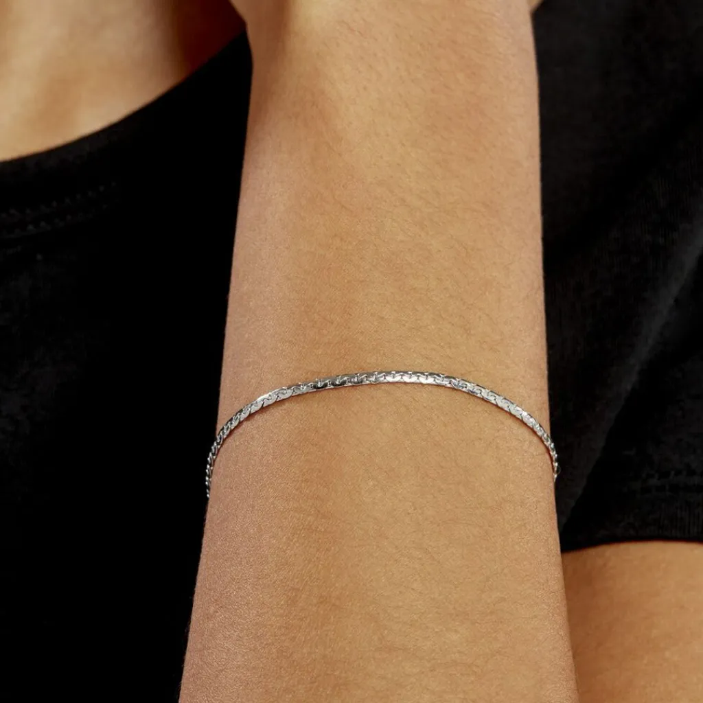 Bracelet Or Blanc 375/1000 Maille Haricot 2mm 16cm
