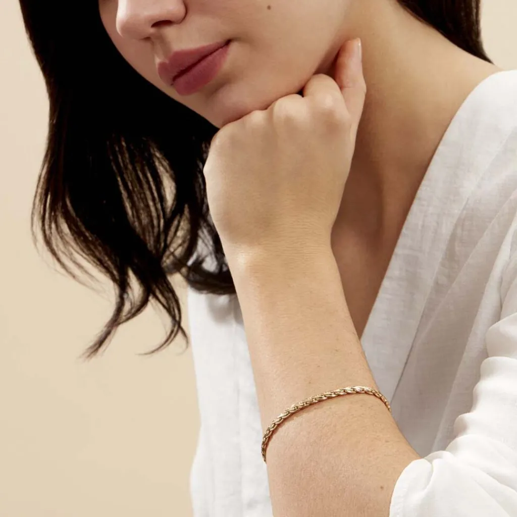Bracelet Or Jaune 375/1000 Maille Palmier Ecrase 5mm 19cm