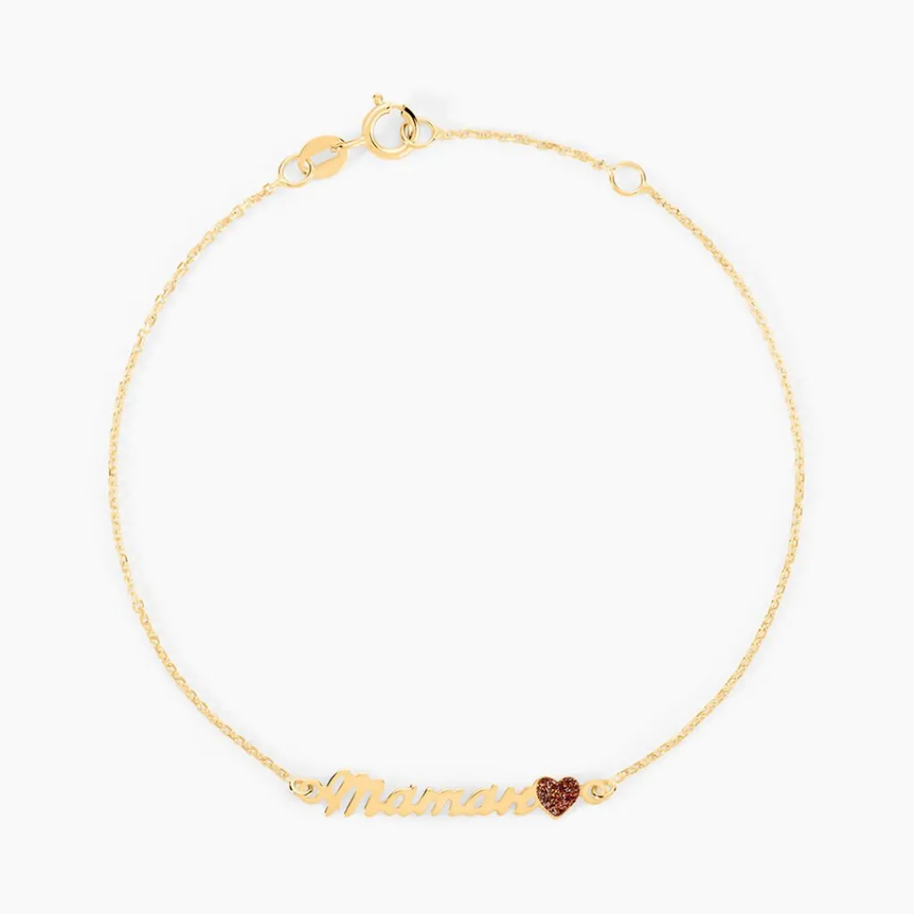 Bracelet Or Jaune 375/1000 Message Maman Lettres Decoupees Coeur Glitter Rose Maille Jaseron 16+2cm