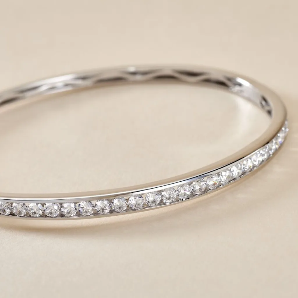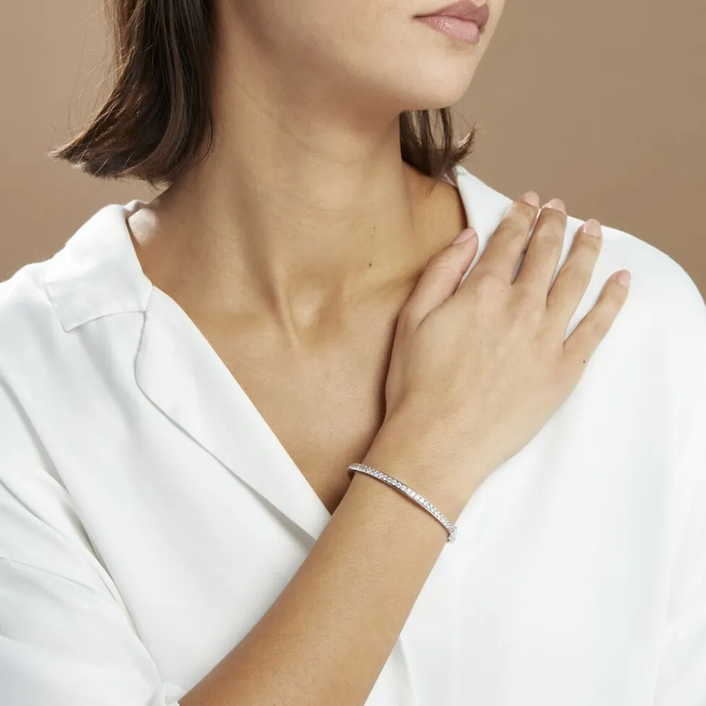 Bracelet Jonc Or Blanc 375/1000 Oxydes De Zirconium Sertis Rails 4mm Diam 52x60mm