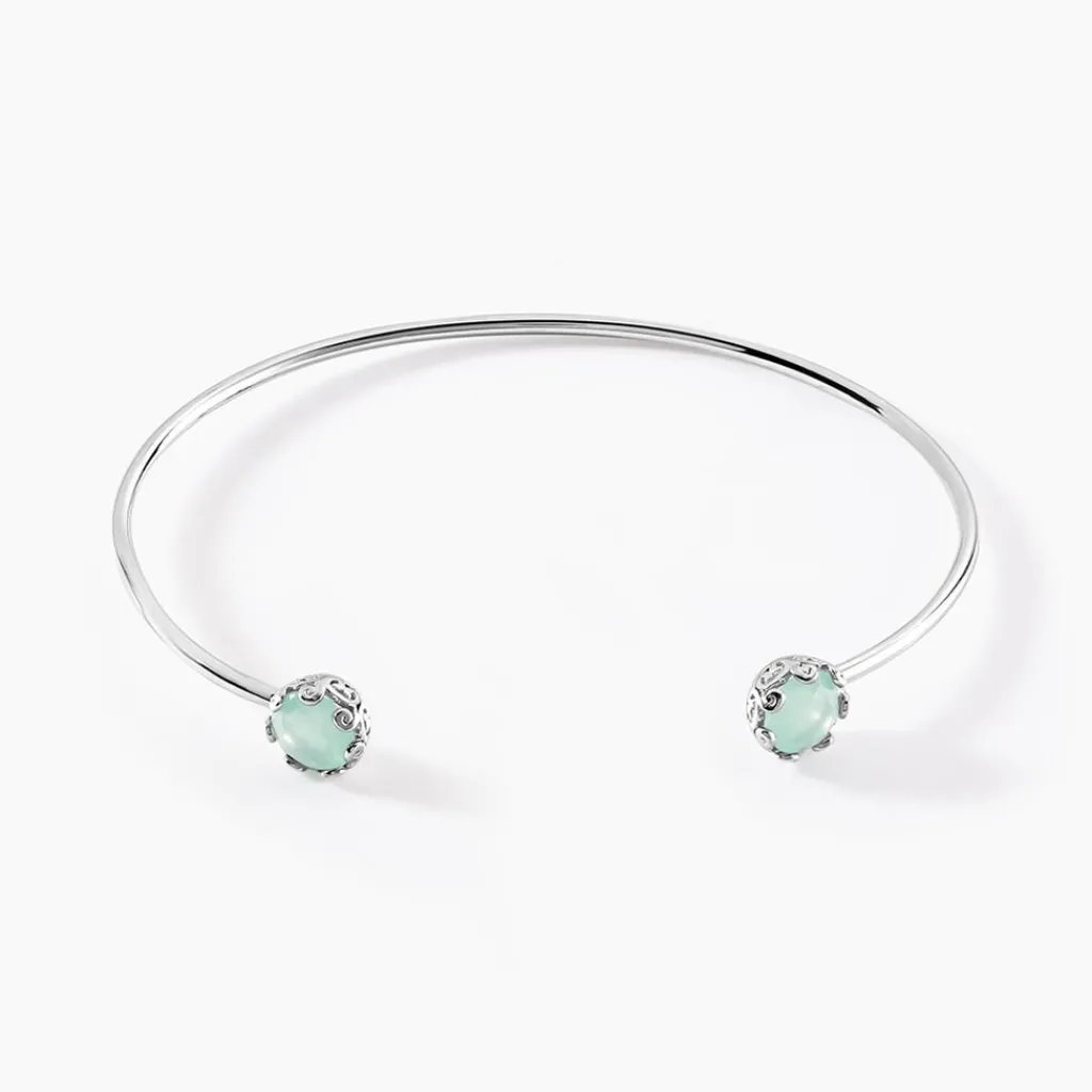 Bracelet Jonc Argent Blanc 925/1000 Verres Verts Serti Griffes Diamètre 55mm