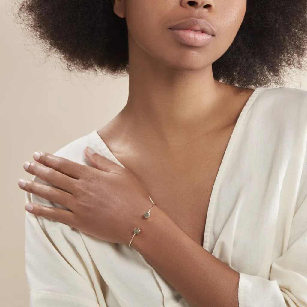 Bracelet Jonc Or Jaune 375/1000 Double Pastilles Glitter Bronze