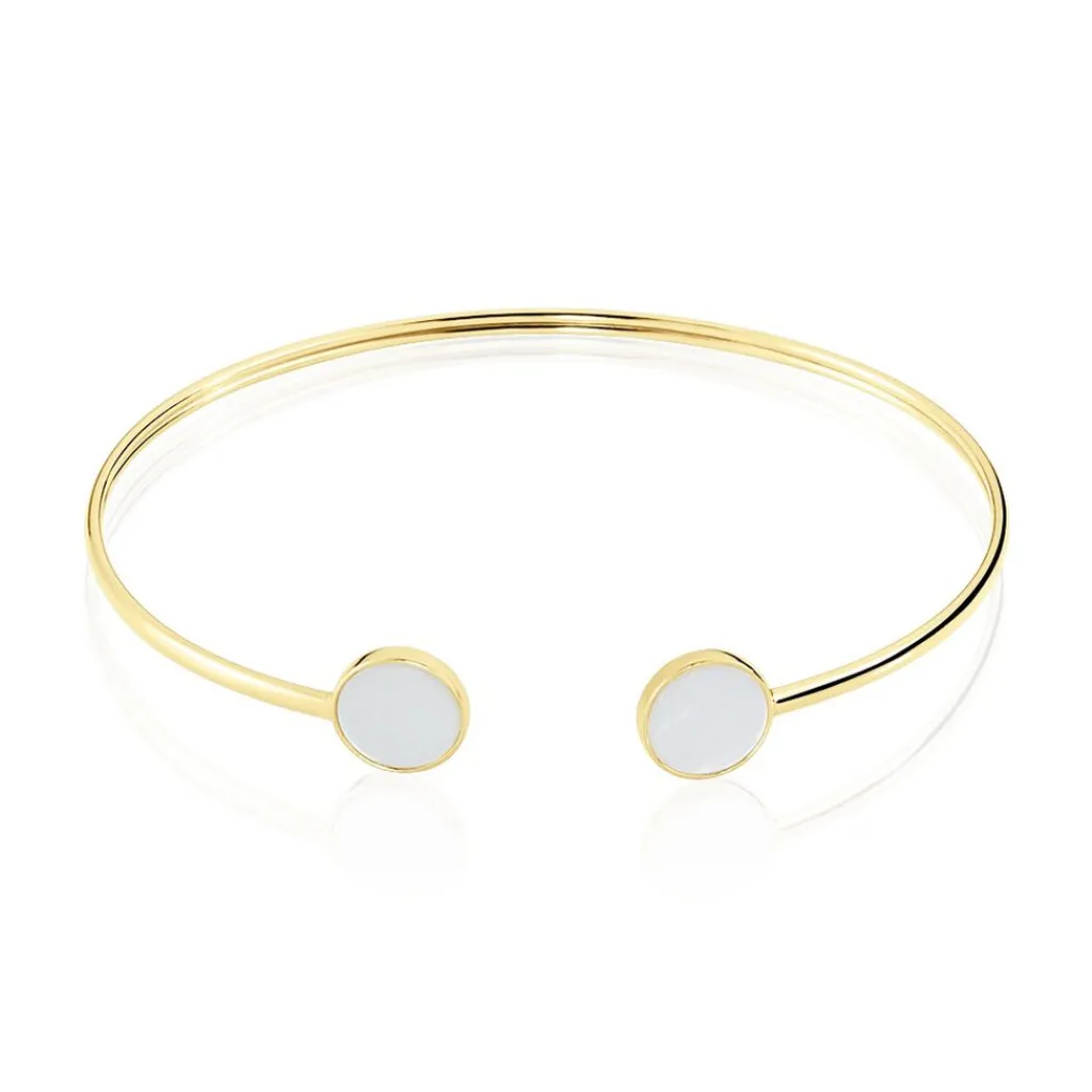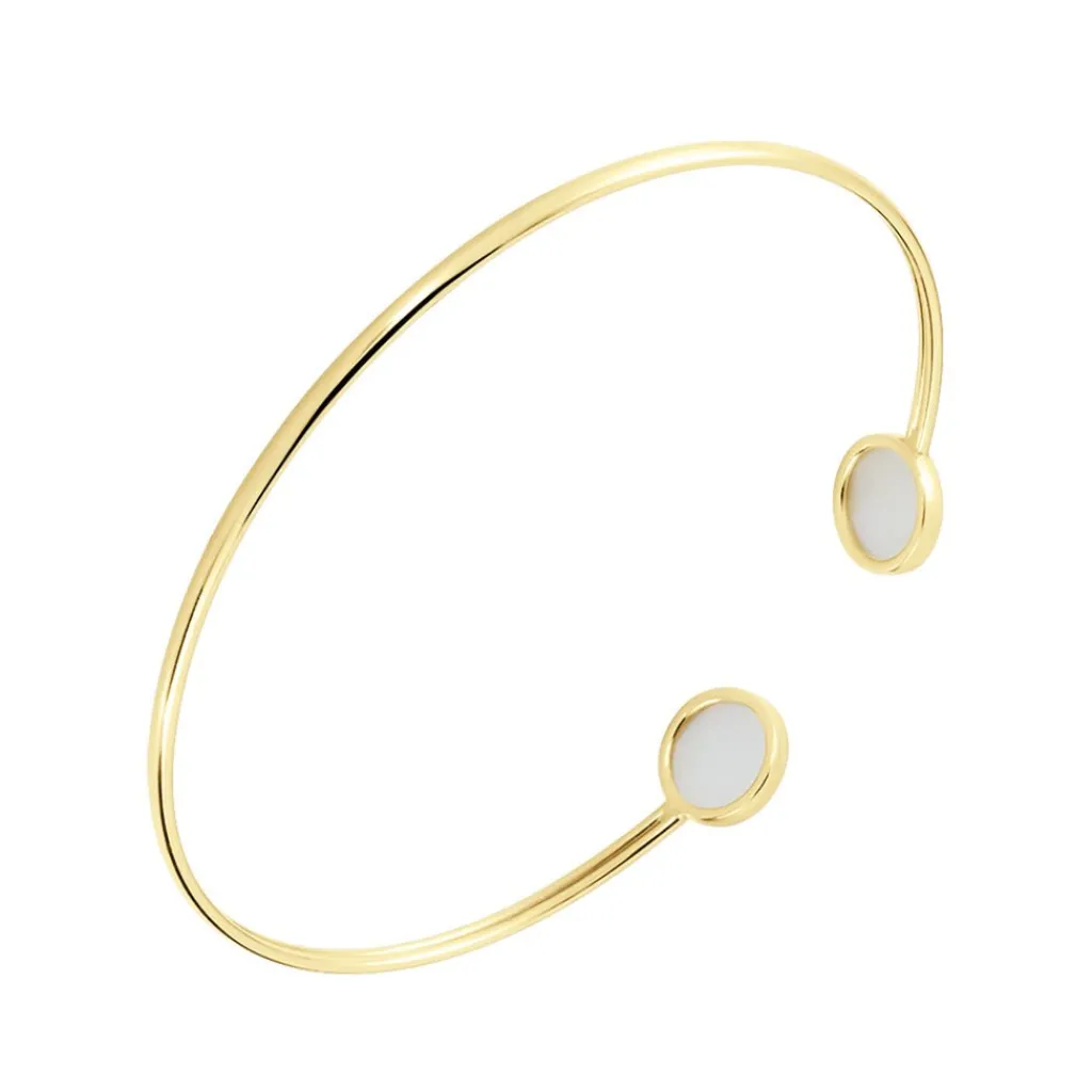 Bracelet Jonc Or Jaune 375/1000 Double Pastilles Nacre Sertis Clos