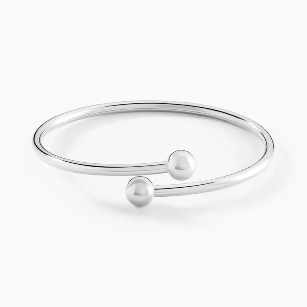 Bracelet Jonc Argent Blanc 925/1000 Ouvert Boules D’arret Largeur 4mm Diametre 60mm