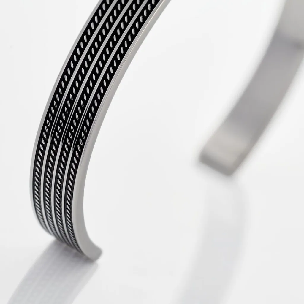 Bracelet Jonc Ouvert Acier Inoxydable Bicolore 4 Rangs Largeur 8mm Diametre 62mm
