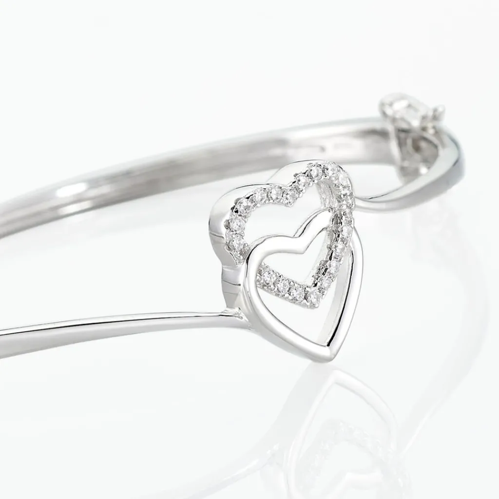 Bracelet Jonc Argent 925/1000 veronike 1 Coeur Ajoure Oxydes De Zirconium + 1 Coeur Ajoure Tout Argent 5.8cm/5cm