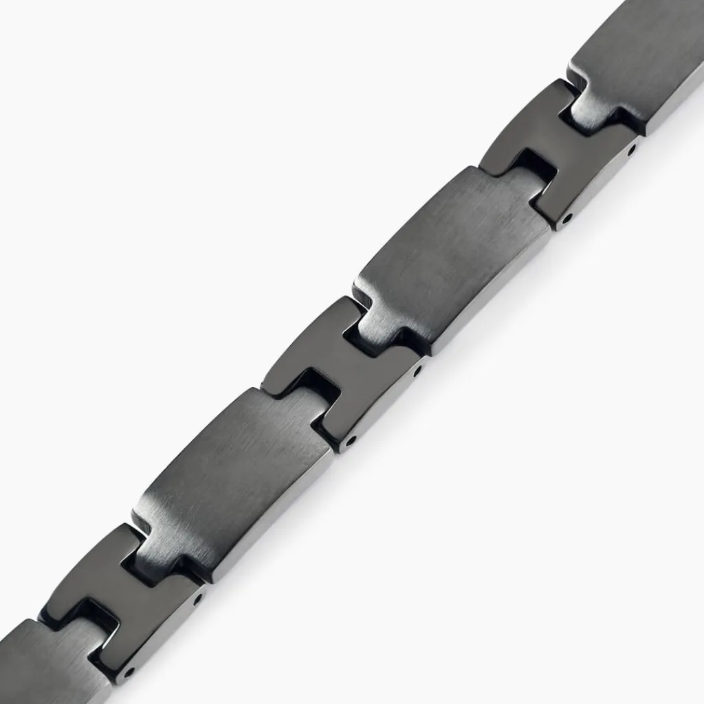 Bracelet Acier Inoxydable Noir Maillons Alternés Pm 21cm