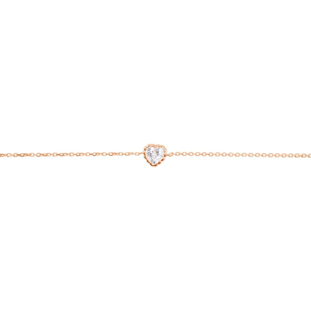 Bracelet Or Rose 375/1000 Solitaire Forme C艙ur Oxyde De Zirconium Serti Clos 17cm