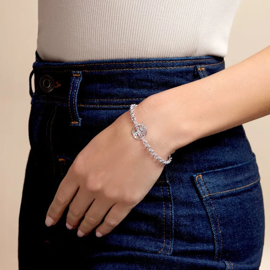 Bracelet Argent Blanc 925/1000 Arbre De Vie Maille Jaseron 18.5cm
