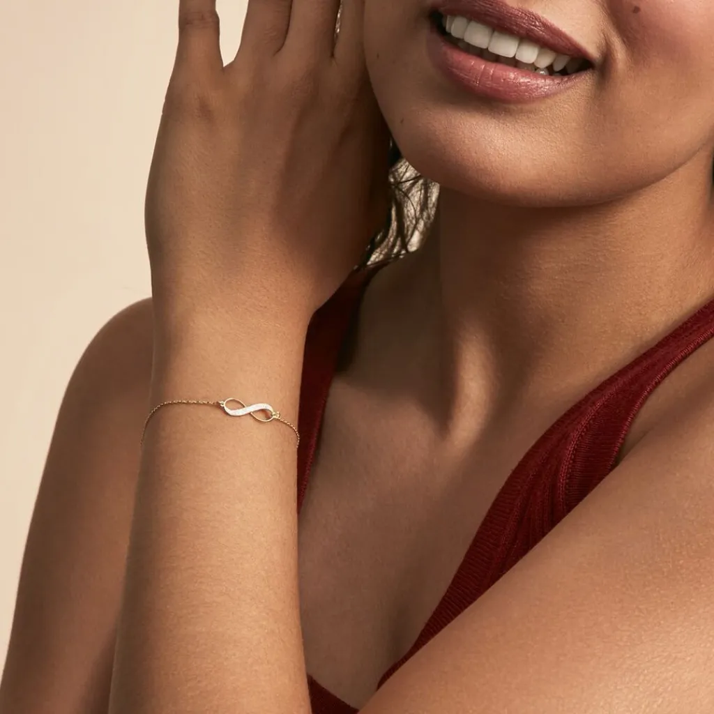 Bracelet Or Jaune 375/1000 Infini Glitter Argente Maille Jaseron 16+2cm