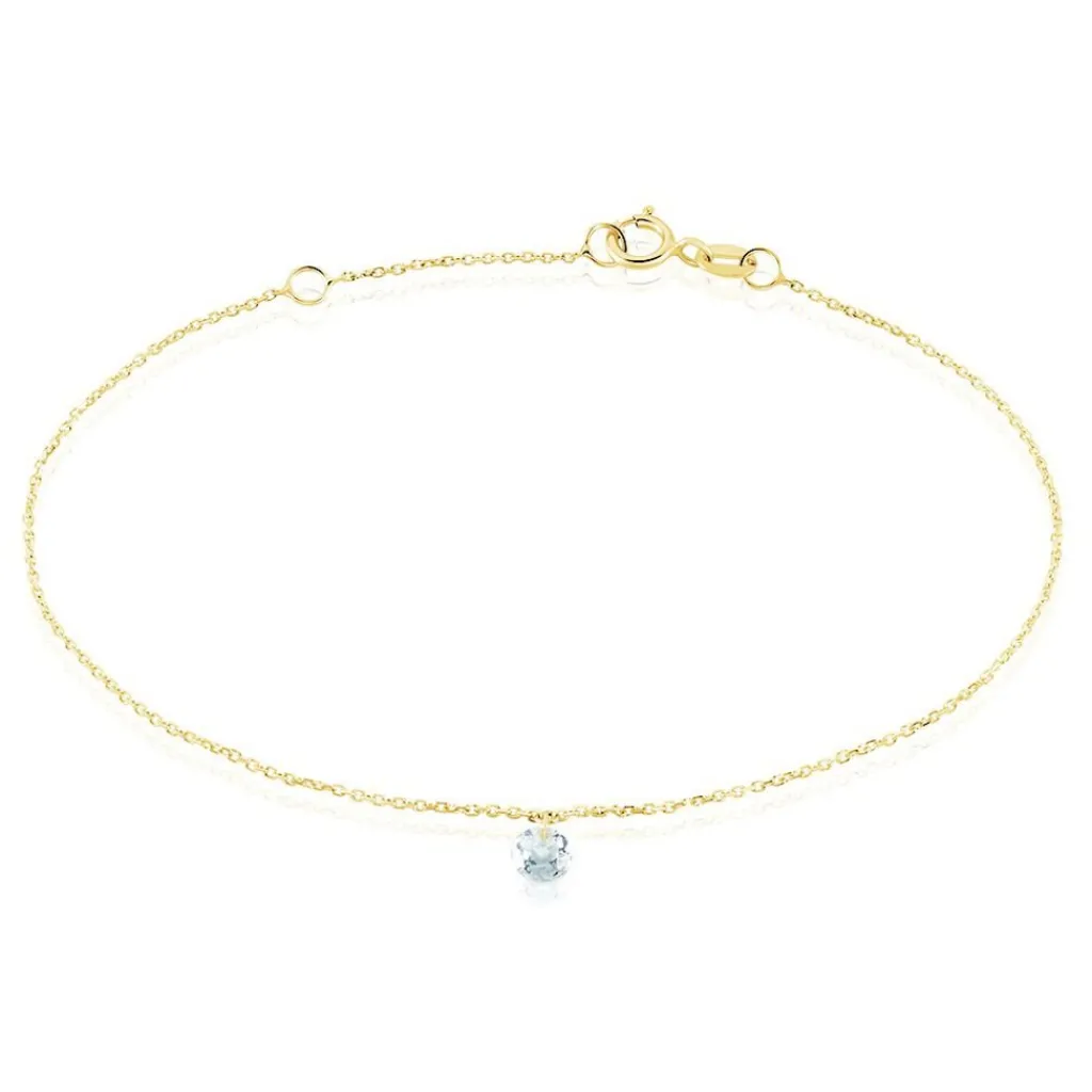 Bracelet Or Jaune 375/1000 Topaze Azur Ronde Percée 0.3 Cts Maille Forçat 18cm