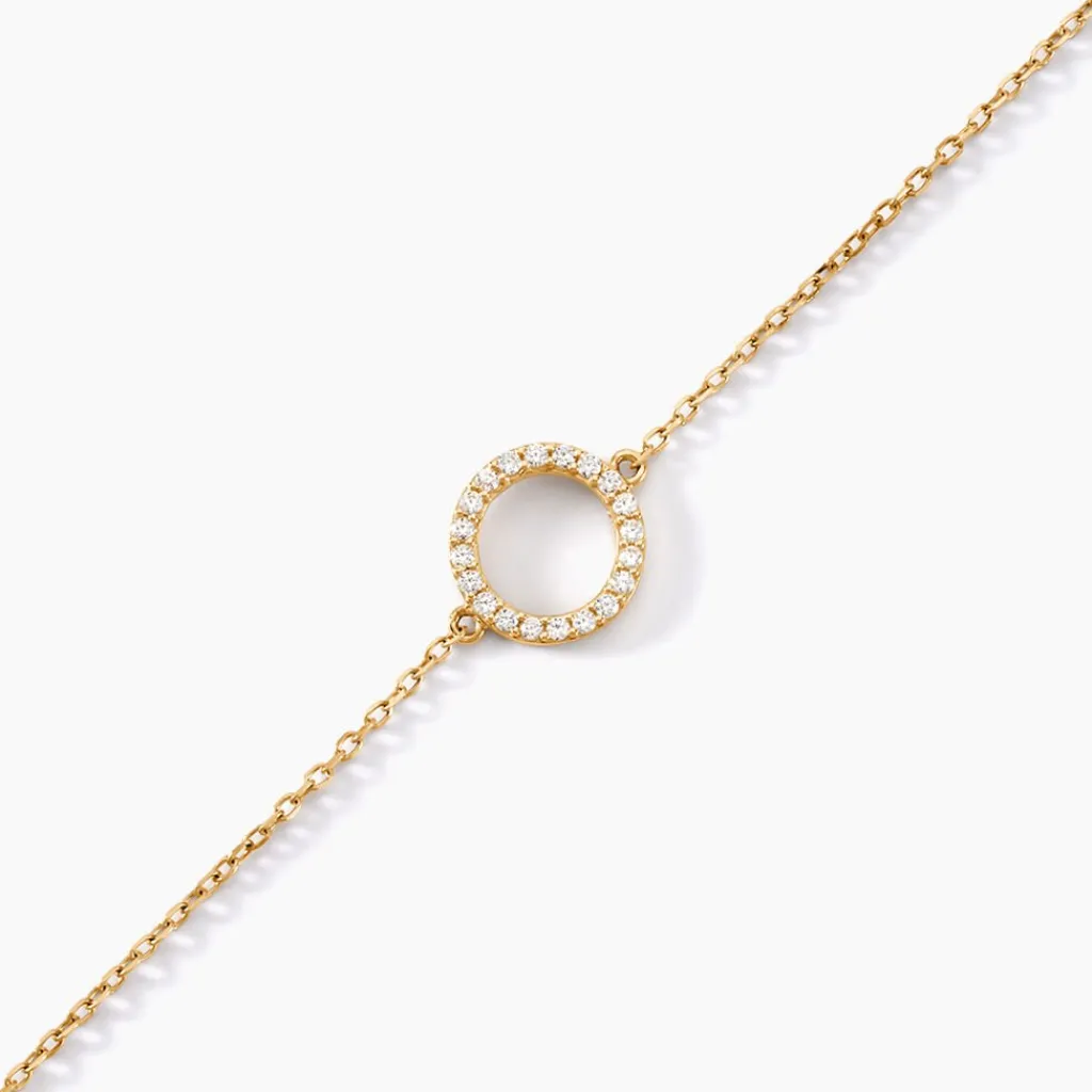 Bracelet Or Jaune 375/1000 Cercle Creux Pave Oxyde De Zirconium 18cm
