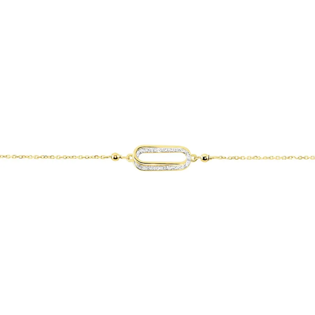 Bracelet Or Jaune 375/1000 Double Rectangles Entrelaces Dont Un Glitter Argente Maille Jaseron 16+2cm