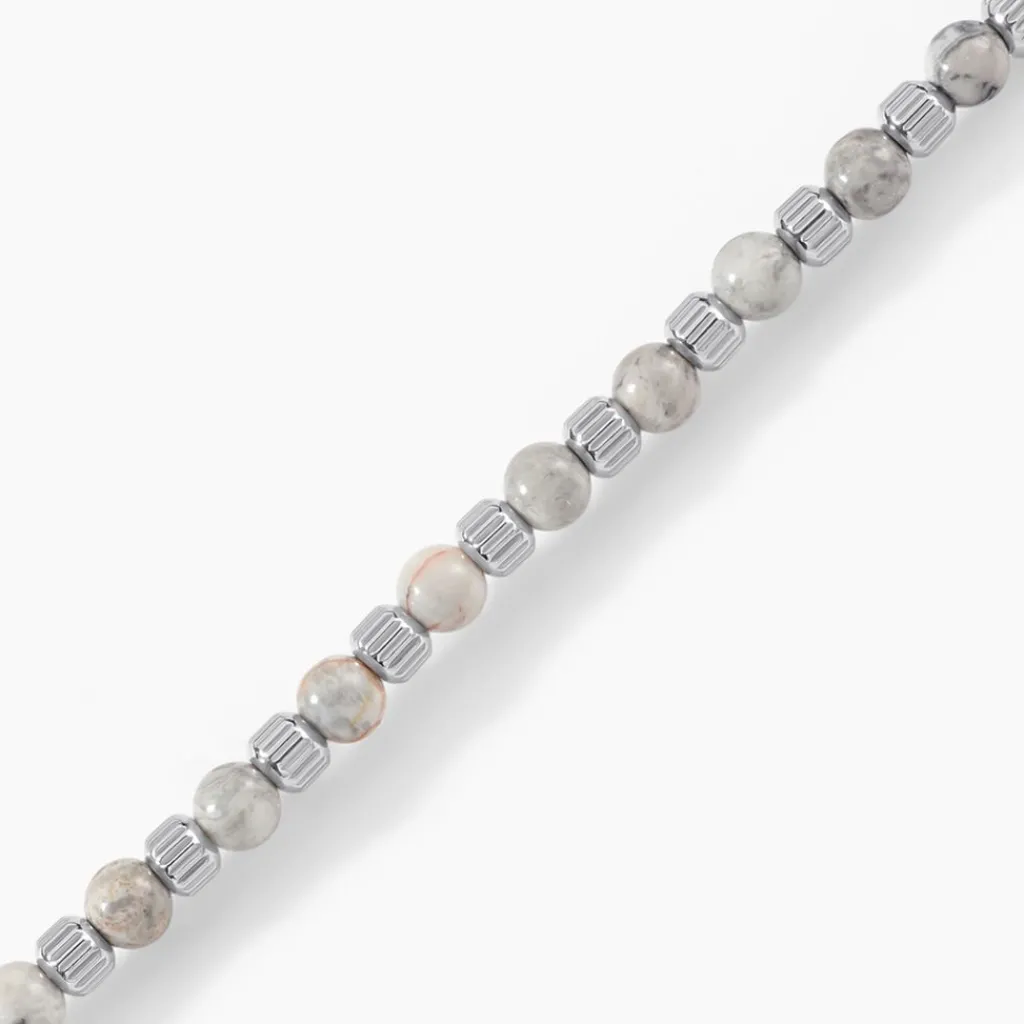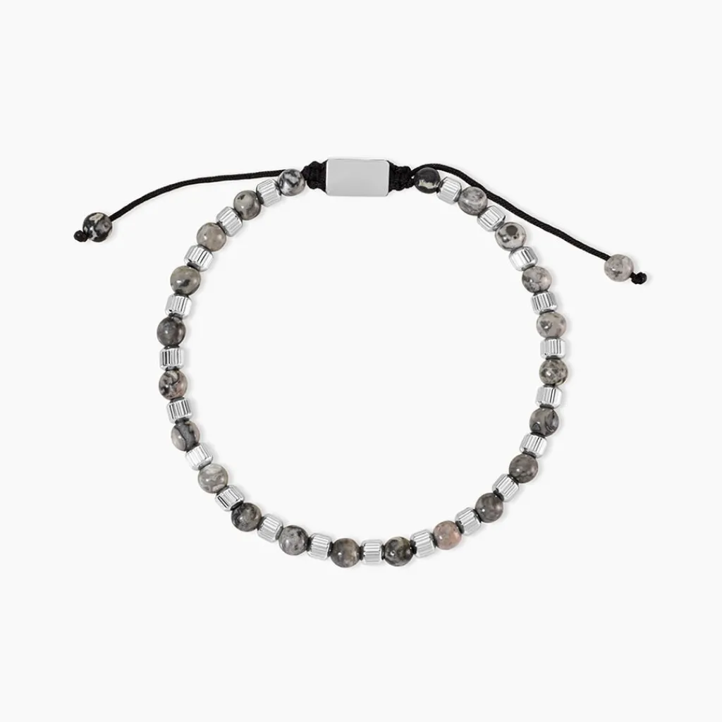 Bracelet Acier Inoxydable Blanc Pierres Map Stone Grises Cordon Ajustable 27cm