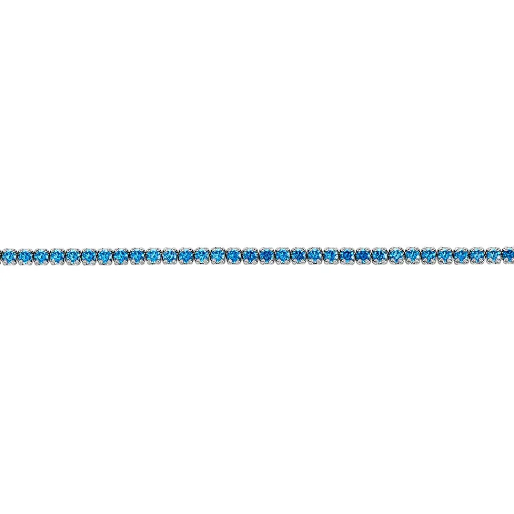 Bracelet Argent 925/1000 Rivière Oxydes De Zirconium Bleus 1.5mm Serti 4 Griffes Maille Tennis 20cm